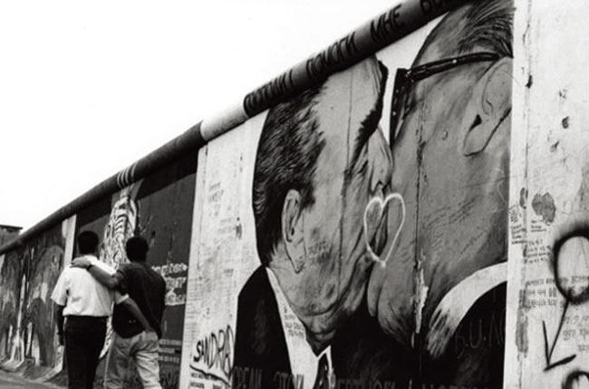 1961 年柏林墻建起后,上面逐漸出現(xiàn)了大量涂鴉作品。由俄羅斯藝術(shù)家德米特里·弗魯貝爾(DmitriVrubel)創(chuàng)作于20 年前的《兄弟之吻》,可算是其中最著名的。《兄弟之吻》描繪的是前民主德國領(lǐng)導(dǎo)人埃里!ぐ杭{克(Erich Honecker)和前蘇聯(lián)領(lǐng)導(dǎo)人勃列日涅夫(Leonid Brezhnev)嘴唇對嘴唇的親吻,帶有很強(qiáng)的諷刺意味。多年來,這幅涂鴉已經(jīng)成為柏林著名的旅游景點。弗魯貝爾在得知成名作將消失后,感到很遺憾,不過他從畫作的歸屬方East Side 畫廊獲得了3000 歐元的補(bǔ)償,而且還被邀請將來重新繪制一幅《兄弟之吻》,“當(dāng)然不再是從政治的角度,而是與愛有關(guān)”。