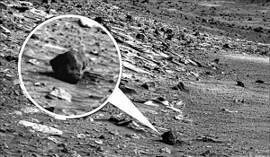 火星愛(ài)好者最近在NASA網(wǎng)站上發(fā)現(xiàn)了一張“勇氣號(hào)”火星車傳回來(lái)的火星照片,這張火星照片頓時(shí)紅遍了互聯(lián)網(wǎng),因?yàn)檫@張清晰的照片上,竟有一個(gè)模樣古怪、酷似人狀“頭顱”的石頭!