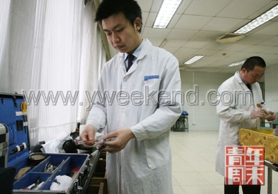去年殯儀館招來一個漂亮的小姑娘,第一天培訓(xùn)結(jié)束后,老師傅問她有沒有男朋友。小姑娘說有。老師傅回頭沖著張洋喊,別惦記了,人家有。后來,張洋鼓足勇氣追過一陣,但沒追上。坐在記者對面,他有點不想提“失敗的原因”。其實,這個男孩長得很精神,只是臉上常常流露出一種不符合年輕人的老氣和憂郁!翱赡芪业男愿駟栴}吧,我像一60年代的人,不活份,不新潮!睆堁笳f不清自己是天生如此,還是這份工作造成的——至今,他都不習慣用Ipod,聽音樂還用CD機。
