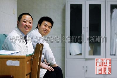 在整容室里,因?yàn)橥g,張洋和張祺關(guān)系很好。張祺相對活潑點(diǎn),他跟張洋講起昨晚做過一個夢,夢見一哥們掉水里了。在夢里他哈哈地樂著!鞍滋觳荒苄,晚上做夢才能笑!睆堨靼腴_玩笑地說。有時候,哥倆做久了這份工作也感到壓抑,晚上必須找朋友喝酒。朋友都會好奇他們的工作,都覺得怎么也得一月上萬。張洋跟記者嚴(yán)肅澄清:真的只有3000多,非常普通的工資標(biāo)準(zhǔn)。