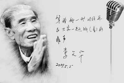 僅僅4天前,李文華通過(guò)前去探病的中國(guó)曲藝家協(xié)會(huì)的唐杰忠、蔡興林、常祥霖、陳連生4位朋友,將一幅病榻上的照片和兩張題字送給關(guān)心他的廣大觀眾。