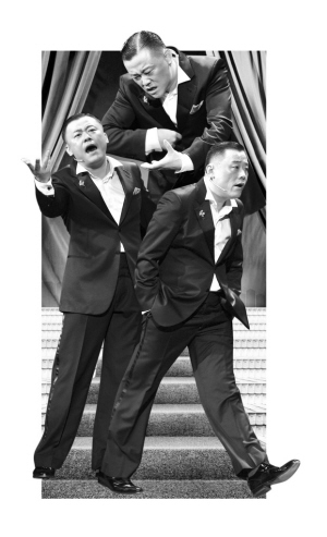 在周立波的《笑侃大上!分校钅芤鹋_(tái)下中年觀眾共鳴的就屬“文革”片段,錢(qián)文忠分析它之所以能產(chǎn)生如此強(qiáng)烈的“笑果”,除了勾起這一輩人的獨(dú)特記憶外,“他將‘文化大革命’說(shuō)成‘文化革大命’,其實(shí)是很睿智地指出了文革中種種荒唐可笑的現(xiàn)象!倍芰⒉ㄒ愿阈ι踔磷猿暗姆绞綘砍隽宋母锏倪@段記憶,也在無(wú)形中解開(kāi)了一個(gè)民族的心結(jié)。