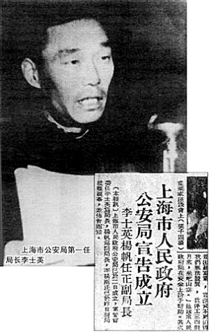 1949年5月,對李士英來說是激動而又銘心刻骨的歲月。那時,37歲的李士英身著土布黃軍裝,胸佩標記,帶著1600多名公安干部精神振奮地進駐大上海,接管國民黨上海警察局。