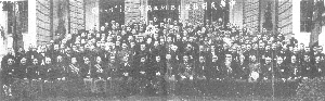 王貴遜帶著徒弟趕了過去。相機在第一會議廳的門前架好后,委員們都過來站好,左等右等卻不見蔣介石。原來,在二樓的蔣介石俯瞰樓下,見委員、警衛(wèi)、記者一堆人,秩序很亂,就借口身體不舒服,不參加合影了。于是,“二號人物”汪精衛(wèi)站在了正中的位置。