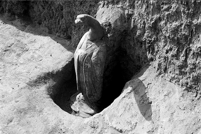 根據(jù)目前的考古資料,兩京(長(zhǎng)安、洛陽(yáng))地區(qū)唐墓中所見(jiàn)最早、最完整的一組十二生肖俑出土于西安南郊開(kāi)元二十四年(736年)唐兵部常選孫承嗣和夫人高氏合葬墓,俑高約25厘米。十二生肖俑在初唐晚期和盛唐時(shí)代墓葬中時(shí)有發(fā)現(xiàn),但在墓葬圍溝中出土卻極為稀見(jiàn),這可能代表著更高級(jí)別的一種喪葬制度?脊艑(zhuān)家認(rèn)為,西安咸陽(yáng)機(jī)場(chǎng)考古工地這次發(fā)現(xiàn)的十二生肖俑群組合基本完整,體量巨大,造型優(yōu)美,出土位置明確,是一組研究唐代喪葬制度和雕塑藝術(shù)不可多得的珍貴資料。