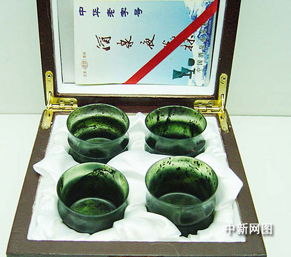 酒泉夜光杯,不僅是我國具有悠久歷史的傳統(tǒng)工藝品,也是一種名貴飲酒器皿。酒杯是用祁連山一帶的酒泉玉石巧磨細(xì)琢而成的。它質(zhì)地細(xì)膩,紋理天然光滑透明,杯壁薄如蛋殼。色澤有脆綠、墨綠、鵝黃、羊脂白等。當(dāng)你把美酒置于杯中,放在月光下,杯中就會(huì)閃閃發(fā)亮。夜光杯具有耐高溫抗嚴(yán)寒的優(yōu)點(diǎn)。斟燙酒,不爆不裂;歷寒冬,不凍不炸。盛酒后,色不變,味更濃,被稱為白玉精。據(jù)《十洲記》記載:周穆王時(shí),西域向朝廷進(jìn)獻(xiàn)夜光常滿杯。杯是白玉之精,記述了西域夜光杯的特色。唐代詩人的“葡萄美酒夜光杯”和葉劍英同志“評泉品酒看光杯”的佳句,更使夜光杯盛譽(yù)遠(yuǎn)揚(yáng)。它現(xiàn)已遠(yuǎn)銷歐、亞、美3大洲的許多國家和地區(qū),深受國際市場的歡迎。