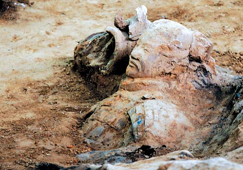 此次發(fā)掘的面積只有200平方米!斑@個(gè)面積是經(jīng)國家文物局批準(zhǔn)的。”據(jù)負(fù)責(zé)此次發(fā)掘的秦俑博物館負(fù)責(zé)人介紹,整個(gè)實(shí)際挖掘考古的過程至少要持續(xù)半年以上。經(jīng)探測,一號(hào)坑中大約共有6000尊兵馬俑!案鶕(jù)此次發(fā)掘面積初步推算,大約會(huì)有11尊兵馬俑出土!笨脊艑<冶硎,具體數(shù)字要等到整個(gè)發(fā)掘結(jié)束后才能知曉。