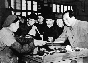 上午十點(diǎn)過(guò)一點(diǎn),李琦有事到車(chē)間門(mén)口,遠(yuǎn)遠(yuǎn)看到有許多人走過(guò)來(lái),“走在前面的人個(gè)子特別高大、顯目,穿著米色的中山裝和風(fēng)衣,氣度非凡,那除了是毛主席還會(huì)是誰(shuí)?”李琦激動(dòng)不已;氐杰(chē)間的崗位上,她的心里怦怦直跳,“主席來(lái)了,我要不要和他握手呢?要不要主動(dòng)向他問(wèn)好……”