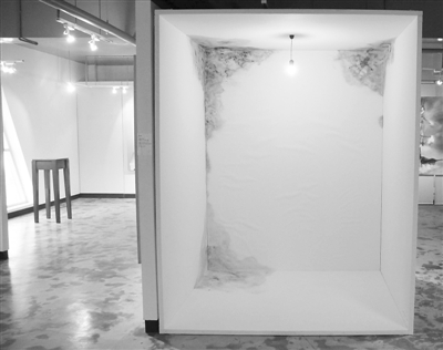 記者昨日在展廳見(jiàn)到,這件裝置藝術(shù)展品名為《不能知道的事兒》,占地約一平方米,作品是一間開(kāi)放式的小屋,“屋”中央掛有一盞昏暗的白熾燈,“小屋天花板”的角落里有一片片的“水漬”,水漬上是一張張孩子的可愛(ài)笑臉。