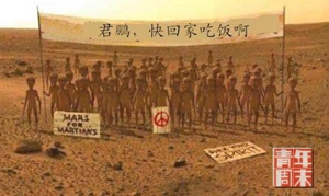 網(wǎng)友繼續(xù)為原本無意義的水帖“增加”意義,帶有“賈君鵬”字樣的PS圖片相繼誕生,有網(wǎng)友在易中天《百家講壇》的照片下方寫,“大家好,我是賈君鵬的班主任”,也有網(wǎng)友在一群外星人舉旗的照片中PS上“賈君鵬你媽媽喊你回家吃飯”的標(biāo)識(shí),或者讓這幾個(gè)字出現(xiàn)在《新聞聯(lián)播》的字幕中,賈君鵬成了無所不在的符號(hào),終極的指向是一場(chǎng)集體無意識(shí)的搞笑和樂子。
