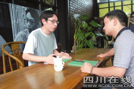 一把太師椅、一張?zhí)茨咀、一杯蓋碗茶,“廢話”開起了山寨“百家講壇”。這件名為《談談教育》的作品用一種溫和的姿態(tài)引發(fā)了不少觀眾的議論,因為該行為藝術的作者就是飽受爭議的中學教師范跑跑。自從他受邀參加8月15日的北京798雙年展之后,范跑跑近日頻頻和藝術家“裹在一起”。當天的《談談教育》可謂他進軍藝術界的“處女作”,說起這次自己參展的愿意,范跑跑有些不好意思,他說:“這次展覽的學術主持陳默老師非要讓我拿件作品出來,我就想到用這種方式,也算是我8月在北京展覽的一次預演吧。”當天,范跑跑就用這種方式同不少觀眾坐而論道,探討中國的教育問題,市民白先生陪自己的朋友來看展覽,無意中發(fā)現(xiàn)范跑跑搖身一變成了藝術家,大感驚奇之余,以兩個孩子父親的身份和范跑跑擺了半天育兒之道。聊完他對記者說:“范跑跑的某些觀點其實還是比較對的,比如他認為現(xiàn)在中國教育理論和實踐嚴重脫節(jié),不過這也是老生常談,而且我的確不知道他的這件行為作品算不算是藝術。” 記者 楊帆 攝影 劉亮