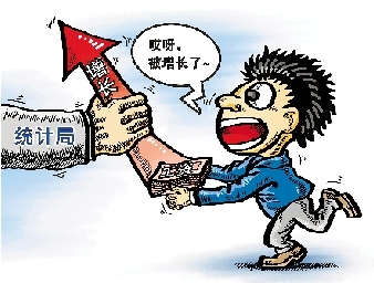 詞匯釋義:近來的新詞中,“被”字輩搶盡風(fēng)頭,前有“被自殺”,后有“被就業(yè)”,如今的掌門人是“被增長(zhǎng)”。說的是國(guó)家統(tǒng)計(jì)局近日公布的一份統(tǒng)計(jì)顯示,上半年全國(guó)城鎮(zhèn)居民人均可支配收入實(shí)際增長(zhǎng)11.2%,農(nóng)村居民增長(zhǎng)8.1%,遠(yuǎn)超上半年7.1%的經(jīng)濟(jì)增速。從前大家都喊工資收入趕不上GDP增速,如今在數(shù)據(jù)上倒是真實(shí)現(xiàn)了,而且還是在全球金融危機(jī)的背景下。善于質(zhì)疑的網(wǎng)友們,更懂得拿數(shù)據(jù)說話,于是紛紛在網(wǎng)絡(luò)上曬工資。結(jié)果顯示,我們的工資根本沒怎么漲,我們的收入原來是“被增長(zhǎng)”了,亦即口袋沒見鼓起來,卻硬要被人說漲工資了。此后,許多媒體紛紛表示,相信國(guó)家統(tǒng)計(jì)局,但不能保證下面報(bào)上來的數(shù)據(jù)是否造假。本刊之前還就“被就業(yè)”談過數(shù)據(jù)造假的誘因以及惡劣后果,所以不再詳細(xì)討論,但要強(qiáng)調(diào)一句話,造假數(shù)據(jù)猛于三鹿奶粉。