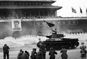 1959年國慶10周年閱兵,具有世界先進水平的國產(chǎn)59式坦克首次在天安門廣場亮相。在受閱的6種型號的火炮中有5種是中國自己制造的。國產(chǎn)的56式?jīng)_鋒槍、56式半自動步槍也都參加受閱。受閱武器裝備的國產(chǎn)化程度大大提高,有些已處于世界先進水平,標志著中國國防工業(yè)由仿制進入了自行設(shè)計制造的嶄新階段。