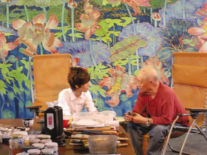黃永玉在北京的居所——萬(wàn)荷堂充滿了田園風(fēng)光和藝術(shù)氣氛,成了本次“求學(xué)”對(duì)話的最佳地點(diǎn)。來(lái)到京郊,漸漸行至萬(wàn)荷堂,原本因胃痛而精神不佳的郭敬明忽然緊張起來(lái),見(jiàn)慣了大場(chǎng)面的他反復(fù)表示“很緊張”。沒(méi)有上課鈴,《大師課堂》悄然開(kāi)始,“老師”也走了出來(lái)。首次見(jiàn)到黃永玉老先生,郭敬明不停地翻看手中的文稿,為接下來(lái)的會(huì)面做著準(zhǔn)備。不過(guò),我們從他的眼神中,也看出了他內(nèi)心的期待。