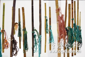 把自己當(dāng)成雕塑一動(dòng)不動(dòng)、把自己掛在鐵桿上被灑水車噴水……昨日,重慶首屆中德青年裝置藝術(shù)作品展——“現(xiàn)實(shí)中的影像”在黃桷坪當(dāng)代美術(shù)館正式開(kāi)展。20多位中德青年藝術(shù)家?guī)?lái)了20件稀奇古怪的作品,其中,用每根100元收購(gòu)來(lái)的棒棒讓參觀者留下了深刻的印象。