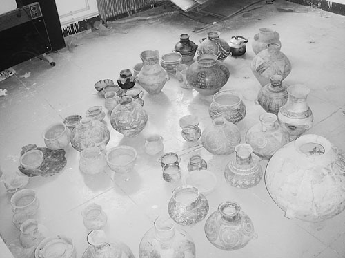 9月5日,記者以文物購買者身份來到“金剛手”家。他拿出幾件彩陶向記者介紹說,這都是從村民手上收來的。這幾件彩陶有一個直徑約10厘米的碗,外沿有條形彩繪。據(jù)介紹,這完全是沒有修飾過的出土文物,但由于花紋較普通,所以價錢不太高。還有一個很小巧的三足罐,據(jù)介紹這是破損后修補的,所以價錢也不貴。還有一個約10厘米高的小口罐,花紋較精美。“金剛手”承認這是“老貨新工”,即出土時掉色了,花紋是后來畫上去的。