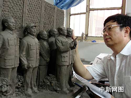中新網(wǎng)洛陽9月8日電(記者 齊永 通訊員 鞏衛(wèi)東)為迎接新中國成立60周年,由中國民間文藝家協(xié)會會員、河南省民間泥塑面塑大師、洛陽市雕塑藝術(shù)研究會副會長李明甫先生創(chuàng)作的泥塑群雕作品《開國大典》日前在洛陽創(chuàng)作完成。