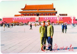 “我們哥倆兒幾乎是同步通過了天安門,這在全國參加國慶閱兵的官兵中都是罕見的!52歲的李鳴捷如今是中國銀行成都高新技術(shù)產(chǎn)業(yè)開發(fā)區(qū)支行行長。1984年10月1日上午10時(shí)許,展示中國改革開放和現(xiàn)代化建設(shè)巨大成就的國慶35周年大閱兵盛典上,李鳴捷在排序第一的軍事學(xué)院方隊(duì),鏗鏘正步走過金水橋旁。此時(shí),弟弟李明偉和戰(zhàn)友駕駛的機(jī)群,也呼嘯長空,在天安門上空中舞出四色彩煙,共慶盛典。退伍多年,兩兄弟很少主動(dòng)提及這段經(jīng)歷,但當(dāng)年受閱的那身軍裝卻一直珍藏。
