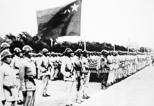 今年10月1日,恰逢建國60周年。每次隆重莊嚴的閱兵儀式,都會成為國慶的重頭戲。60年前,新中國開國大典的閱兵儀式是如何訓(xùn)練的?當年從江西走出的199師師長、獲得少將稱號的李水清帶領(lǐng)的12個步兵方隊,又是怎樣成為開國大典閱兵式陸軍第一方隊的?17日,江西著名攝影師戴廷耀向記者講述了江西老紅軍李水清當年帶隊在天安門受閱的背后故事。