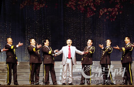 “革命傳統(tǒng)代代發(fā)揚(yáng),鐵軍精神永放光芒!”昨天下午,由新四軍的后代及革命前輩的子弟組建的“新四軍后代合唱團(tuán)”,在軍區(qū)禮堂為其母!獜V州八一實(shí)驗(yàn)學(xué)校的師生們獻(xiàn)上了一場精彩的演出。劉少奇的長孫劉維寧(阿廖沙)助陣現(xiàn)場,并用俄語領(lǐng)唱了《喀秋莎》和《神圣的戰(zhàn)爭》。