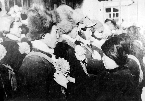 除了參軍作戰(zhàn)外,東北地區(qū)還有60萬民工支前出戰(zhàn)勤!耙擞腥!要錢有錢!要糧有糧!”為了這場戰(zhàn)爭,遼寧省幾乎動用了全省的人力物力。17歲至50歲男子們,18 歲至45歲婦女們參加戰(zhàn)勤工作。一切有運(yùn)輸能力的工具,船只、車輛、牲畜等全部用來戰(zhàn)爭運(yùn)輸。工人們組織擔(dān)架隊(duì)。學(xué)校醫(yī)院組織輸血隊(duì)……