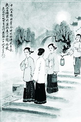 《洛中記聞》說,唐僖宗在中秋節(jié)吃月餅,味道極美,便命御膳房用紅綾包裹月餅賞賜給新科進(jìn)士們。這是我們能夠看到的最早的關(guān)于月餅的記載。到了宋代,月餅有“荷葉”、“金花”、“芙蓉”等雅稱,其制作方法也更加精致。詩人蘇東坡有詩稱贊說:“小餅如嚼月,中有酥與飴。”酥是油酥,飴就是糖,其味道甜脆香美可想而知。宋以后,制作月餅不僅講究味道,而且在餅面上設(shè)計(jì)了各種各樣與月宮傳說有關(guān)的圖案。餅面上的圖案,起初大概是先畫在紙上然后粘貼在餅面上,后來干脆用面模壓制在月餅之上。滿月形的月餅也跟十五的圓月一樣象征著大團(tuán)圓,人們把它當(dāng)作節(jié)日食品,用它祭月,用它贈(zèng)送親友。