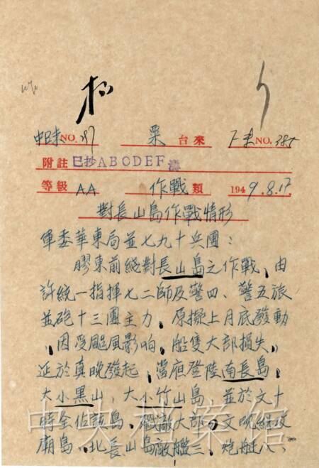 長山列島位于山東半島與遼東半島之間,扼渤海灣門戶,由南、北長山島等17個島嶼組成。山東半島解放后,退據(jù)長山列島的國民黨軍陸戰(zhàn)第2團(tuán)等部,破壞漁業(yè)生產(chǎn)和海上交通,妄圖封鎖渤海灣。1949年8月,中國人民解放軍山東軍區(qū)指揮進(jìn)行解放長山列島的作戰(zhàn)。11日晚,第24軍第72師和警備第4、第5旅分別從蓬萊縣劉家旺、欒家口、解宋營起渡。12日凌晨,警備第4、第5旅攻占長山列島兩翼大小黑山島、大小竹山島,牽制停泊在南北長山島的國民黨軍艦艇。第72師在友鄰配合下,接近南北長山島,并在炮火掩護(hù)下迅速登島,與國民黨守軍展開激戰(zhàn),上午攻占南長山島,下午占領(lǐng)北長山島。爾后以警備第5旅為主,向砣磯島、大小欽島、南北皇城島發(fā)展進(jìn)攻。至20日,國民黨守軍殘部棄島逃遁,人民解放軍收復(fù)了國民黨軍隊(duì)占領(lǐng)的大小島嶼,殲國民黨軍15OO余人,山東省全境解放。