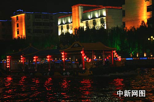 晚上9時許,記者在運(yùn)河邊看到,古運(yùn)河的游船忙得不可開交,許多游客排著隊(duì)等著感受“船在水中走,人在畫中游”的勝景。