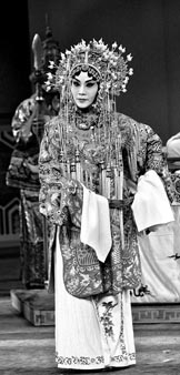 “鎧甲” 行話為“靠”,造型很像甲胄。武將扎上“靠”,表現(xiàn)出人物威風(fēng)凜凜、氣宇軒昂的英雄氣概。“褶”在京劇服裝里,屬于便服,不論哪個(gè)行當(dāng)或哪種身份的人物都可以穿這種服裝。旦行的褶子為對(duì)襟,略短。褶子如繡有飛鳥(niǎo)、蝴蝶、花卉等圖案的稱為花褶子;沒(méi)有刺繡的稱為素褶子!班,繡有團(tuán)龍團(tuán)鳳圖案的黃帔,為皇帝、后妃、公主所穿;繡有鶴、鹿、牡丹、花卉等圖案的帔,為宰相、重臣、紳士、夫人等人物所穿;狀元登科和新婚拜禮時(shí)穿大紅繡花帔;一般文人學(xué)士只穿素帔。下層人物也各有專門(mén)服式。除兵卒的衣外,劊子手、龍?zhí)拙刑囟ǖ囊隆O家、堂倌、書(shū)童穿對(duì)襟粗布衣褲。還有僧人、道人穿的八卦衣、道姑衣、法衣等。包括各路神仙也有屬于各自的服飾。(職茵 整理)