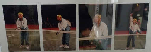 墻壁上還掛著呂正操打網(wǎng)球照片、在祖國的大西南修鐵路時(shí)的照片!案赣H自評一生干了三件 事 ,打日本、修鐵路、打網(wǎng)球。這些在客廳里的小展覽都涉及到了!