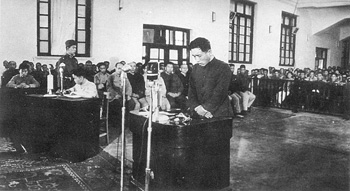 為了這次出庭,王克峰頭一次穿上整潔的灰色毛料中山裝、黑皮鞋,拎的是米黃色皮包,在法庭上接受公訴人、審判長(zhǎng)、辯護(hù)人、被告人的質(zhì)疑詢問(wèn),以鑒定證據(jù)支持公訴。整個(gè)過(guò)程,都用電影膠片給記錄了下來(lái)。被告人住岡義一當(dāng)庭認(rèn)罪,請(qǐng)求審判長(zhǎng)“給我最嚴(yán)重處分”。
