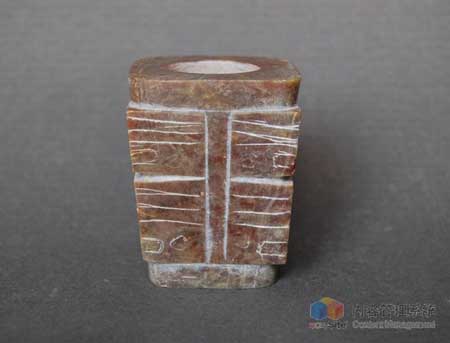 已發(fā)掘的4座規(guī)格較高的出土玉琮、玉璧的墓葬都分布于北片墓地的東北部。這些墓葬中尤其重要的是16號(hào)墓(南部殘),它出土了玉琮和有刻劃符號(hào)的玉璧。該件玉璧直徑24.7厘米,上面刻劃著兩個(gè)符號(hào),一個(gè)位于玉璧正面,另一個(gè)位于側(cè)邊緣。這是首次經(jīng)正式考古發(fā)掘出土的良渚文化有刻劃符號(hào)的玉璧,也是迄今為止省內(nèi)考古發(fā)掘出土的直徑最大的良渚文化玉璧。21號(hào)墓出土的玉琮上紋飾刻劃得較粗糙。