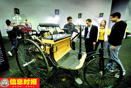 彈孔連珠式散布的毛澤東座駕,威風(fēng)凜凜的周總理座駕紅旗CA770,還有奔馳1號——人類汽車制造史上的第一輛汽車……本屆奢侈品展人氣最旺當(dāng)屬老爺車展區(qū)。今年,主辦方花費(fèi)過百萬元搜羅、租賃20輛名人老爺車,以及孫中山、周恩來、朱德、彭德懷、慈禧、溥儀等人當(dāng)年的座駕。