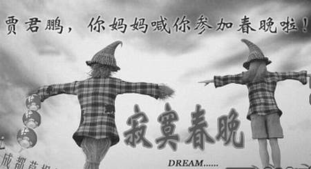 雖然離春節(jié)還有一段時(shí)間,但山寨春晚的話題再一次被提起。昨日,以拍攝草根電影、山寨奧運(yùn)、山寨克隆版《風(fēng)聲》、去年舉辦豬堅(jiān)強(qiáng)草根春晚而聞名的“成都草根劇組”再一次以樂(lè)活精神舉起了成都草根春晚的旗幟——今年,成都的草根春晚將大打網(wǎng)絡(luò)牌,將寂寞黨、賈君鵬等一系列轟動(dòng)網(wǎng)絡(luò)的熱門(mén)話題納入春晚節(jié)目中,且春晚名字就叫做“寂寞春晚”。為了辦好草根春晚,網(wǎng)友正召集綠林草根,為“寂寞春晚”尋找不甘寂寞的坊間好漢以及山寨場(chǎng)地。