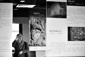 在展出的這些被掠奪走的石頭圖片中,有明代宮廷雕刻麒麟石、“上海市政府辦公廳”唐草紋樣拱門石、長城石磚、綏遠清代高官墓石、南京中山陵的石頭、泰山頂上的石頭、南京紫金山上的石頭、蘇州城的太鼓石、旅順港的封鎖舟之石等。(記者王薈)