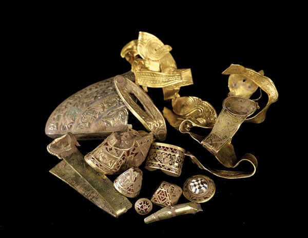 此次出土的史前文物多與戰(zhàn)爭相關,如頭盔的碎片、嵌有石榴石的黃金劍柄等?脊艑W家表示,這些文物很可能是從某位國王手中繳獲的戰(zhàn)利品。史詩《貝奧武甫》就曾提及在盎格魯撒克遜時期國王與貴族之間經常發(fā)生戰(zhàn)爭,使得不列顛群島與歐洲的其余部分相隔開來。但此次發(fā)現(xiàn)的寶藏顯示,英國并未像之前記載的那般,切斷了與其他地區(qū)間的發(fā)展脈絡。諸如黃金劍柄上的石榴石就很可能源自斯里蘭卡等地,這表示英國在當時仍存在著某種形式的長途貿易。