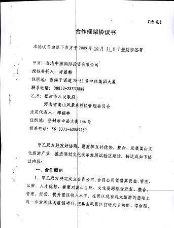 被少林寺方丈釋永信辟謠多次的“少林寺上市”或許并非空穴來風(fēng),不過這一次秘密運(yùn)作2011年“上市”的是登封市政府,連少林寺也被蒙在鼓里。香港中旅集團(tuán)與登封市簽署的《合作框架協(xié)議書》和《登封市政府常務(wù)會(huì)議紀(jì)要》顯示,雙方確定斥資一億元成立“港中旅(登封)嵩山少林文化旅游有限公司”,其中港方占51%股本控股,少林寺門票經(jīng)營權(quán)等嵩山少林景區(qū)資產(chǎn)則被登封市作價(jià)4900萬元作為入股的一部分。(12月16日千龍網(wǎng))