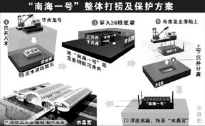 經過多次論證,專家們比較傾向采用“沉箱式”整體打撈方案,即用鋼板將沉船整體包住,再用鋼釬從船底穿過,潛水員在海底進行打鉚和焊接,最后將沉船整體打撈出水。整體打撈首先必須要把沉箱壓到海底扣住整條船,如果扣不住就沒有辦法穿底梁,底部不封閉,不可能打撈。水下考古中心隊員魏俊說:“在這個過程中,我們又遇到了一些難題:第一個沉箱下壓,需要多大的壓力,才能到位?第二,壓下去之后,淤泥沒有了,只有海水,這樣會不會使原有的船由于周圍環(huán)境的改變而遭到損壞;第三,這個箱子封閉以后怎么把它吊起來?”