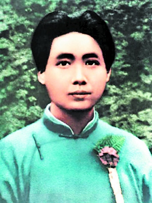 從照片可以得知,那時候的毛澤東留著中分頭,顯得比較規(guī)矩莊嚴(yán),這正是他由激昂的性格趨向穩(wěn)重的一個階段。當(dāng)然,那張照片肯定是在照相館里面拍的,難免有點中規(guī)中矩,但仍掩飾不住毛澤東一以貫之的豪邁。在創(chuàng)作過程中,我以這張照片為基礎(chǔ),但并不拘泥于此照,還參考了此前毛澤東在韶山、在長沙第一師范、在上海的形象,同時綜合毛澤東此后在瑞金、井岡山、長征路上以及延安的照片,把青年和中年時期的毛澤東形象綜合起來思考,找出主席形象的不同時期的共性特征,最終塑造出長發(fā)飄逸的青年毛澤東藝術(shù)形象。
