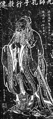 人們通常看到的“孔子行教像”最早出于唐朝著名的宮廷畫家吳道子,但他似乎并沒有認(rèn)真查考資料。另一方面,受《孔叢子》偽書說的影響,以后的孔子畫像便以訛傳訛,使孔子畫像、雕像都濃眉長髯。實(shí)際上,前人也指出孔子沒有須眉,如明陳繼儒《群碎錄》、清杭世駿《訂訛類編》就說:孔子無須,今像多須,誤。