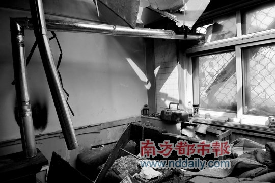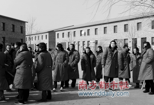 2月23日,正陽藝術區(qū)值班的藝術家們,只得圍坐在炭火邊取暖。自2009年11月起,藝術家們原先租住的房屋已經(jīng)被斷水斷電,而前一天,原先可生爐子居住的維權辦公室,已被不明身份的人士用大型機械掀去屋頂,房門及窗戶等均被砸爛。
