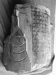 在豐樂鎮(zhèn)村南豐行政村與北豐行政村之間,有一條灌溉渠,渠北約30米的地方,有一堆磚頭,磚堆旁有一圓柱狀的石頭。馮龍海覺得這東西能當(dāng)個不錯的門墩,就吆喝朋友,把它抬到了車上。“回來一看,嘿,還有字有畫的!瘪T龍海說,“我不識字,就叫來陳東元(陳黎明),讓他看了看!