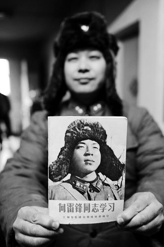 除了書(shū)籍、連環(huán)畫(huà)外,還有就是那個(gè)時(shí)代的物品,軍用水壺、子彈袋、軍綠書(shū)包、軍用皮帶、帆布大頭鞋、棉鞋墊、棉布襪子等,一應(yīng)俱全。最不起眼的要算兩只棉鞋墊,上面還清晰地印著“1964”等字樣。王鋒告訴記者,在這些軍用品中,最珍貴的要算那套當(dāng)時(shí)汽車(chē)兵穿的軍用棉大衣,雷鋒活著的時(shí)候就是一名汽車(chē)兵。王鋒說(shuō),棉衣是1996年他和朋友從渭南農(nóng)村“討”來(lái)的。大衣最初的收藏者是一名退伍老兵,當(dāng)年就在東北當(dāng)兵,退伍后,一直小心收藏著這些東西,被王鋒的誠(chéng)意打動(dòng)后,老兵把棉衣交給了王鋒。多年來(lái),老兵還經(jīng)常打電話,詢問(wèn)這套棉大衣的情況。