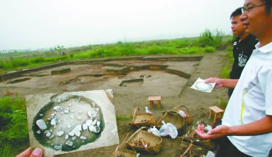 去年7月,本報記者前往發(fā)掘現(xiàn)場采訪,當時已從遺址中發(fā)掘出眾多陶器碎片,還有一些無法辨別材質的物品,其神秘性為剛剛開始發(fā)掘的遺址留下懸念。在隨后的發(fā)掘過程中,省文物考古研究院除調集本院的大量專業(yè)人員外,還邀請和組織了包括北京大學、南京大學、四川大學、重慶市文物考古研究所等單位的專業(yè)技術人員。