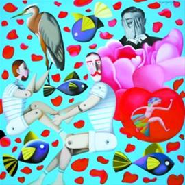1956年出生,現為上海師范大學美術學院教授、中國美術家協會會員、中國油畫學會理事、上海美術家協會常務理事的王向明,已經是香港蘇富比的“老朋友”了,此前曾獲全國青年畫展金獎、全國美展銀獎、臺灣“隔山”大獎賽優(yōu)秀獎等等,作品為中國美術館、上海美術館、福岡美術館以及海外私人收藏的他,是這次作品參與拍賣的唯一一位上海畫家,而在50多件現代拍品中,《向大師致敬·波波永遠愛心蕩漾》是蘇富比在“嚴密”關注他的創(chuàng)作動態(tài)的前提下,最終選中的一幅作品:“上海其實一直都有文化淵源,人才輩出,但在文化市場上卻比較弱勢,周立波的脫穎而出對我啟發(fā)很深,我們不能太謙虛,要表現強烈的海派風格,推崇上海文化、文明,這也屬于上海的藝術家之間的惺惺相惜。 ”