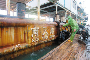 記者看到,“南天順”甲板上整齊放置了很多設(shè)備,兩個(gè)巨大白色“箱子”尤其引人注目。隨船醫(yī)生黃耀平告訴記者,這是負(fù)責(zé)供氣、減壓的應(yīng)急設(shè)施。根據(jù)水下考古程序,考古隊(duì)員作業(yè)出水后都需先進(jìn)入減壓艙內(nèi)進(jìn)行加壓、減壓。此次為了打撈“南澳一號(hào)”,“南天順”配備了先進(jìn)的設(shè)備和儀器,如甲板減壓艙設(shè)備一流,有可視屏幕,醫(yī)務(wù)人員可看到密閉艙內(nèi)隊(duì)員的情況,也可通過(guò)電話與考古隊(duì)員對(duì)話交流。