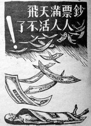 然而不到3個月的時間,通貨膨脹、貨幣貶值的現(xiàn)象再度上演,老人們回憶,當時?诘奈飪r一天數(shù)變,上午和下午不一樣,過了一晚又不一樣,而商人們寧愿屯積貨物也不存錢,物價因此狂漲。市場物價出現(xiàn)突破限價,由于金圓券最高只有一百元,“即使只買個日常生活用品,也要抬上一米袋的錢。”年過八旬的唐南椿回憶說。