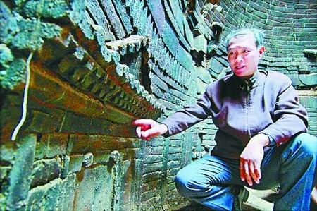 該座宋墓位于南水北調(diào)焦作段普濟(jì)路一處工地上。記者昨日到達(dá)現(xiàn)場(chǎng)時(shí),南水北調(diào)焦作段施工人員正在幫助文物工作人員保護(hù)發(fā)掘現(xiàn)場(chǎng)。據(jù)焦作市文物工作隊(duì)古建專(zhuān)家趙德才介紹,圓形宋墓在焦作市所發(fā)掘的宋墓中比較罕見(jiàn),這座宋墓上所雕刻的建筑結(jié)構(gòu)清晰可見(jiàn),對(duì)研究宋代建筑有一定價(jià)值。