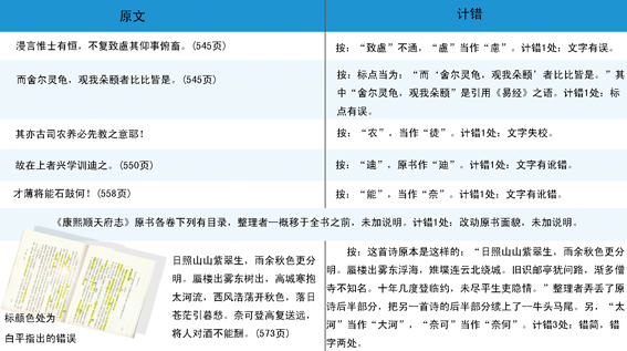 王德怡稱,目前所發(fā)現(xiàn)的閻校本《康熙順天府志》中出現(xiàn)的錯(cuò)誤,集中出現(xiàn)在第七、八卷。清人張吉午《康熙順天府志》原有八卷,現(xiàn)存七卷。從第六卷開(kāi)始,內(nèi)容開(kāi)始變得復(fù)雜,處理起來(lái)難度也增加了許多。閻校本出現(xiàn)的錯(cuò)誤大致分為三類:一是錯(cuò)別字;二是標(biāo)點(diǎn)符號(hào)錯(cuò)誤;三是注釋錯(cuò)誤。