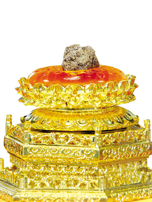 昨天上午儀式結(jié)束后,記者得以近距離瞻禮了佛頂骨舍利。